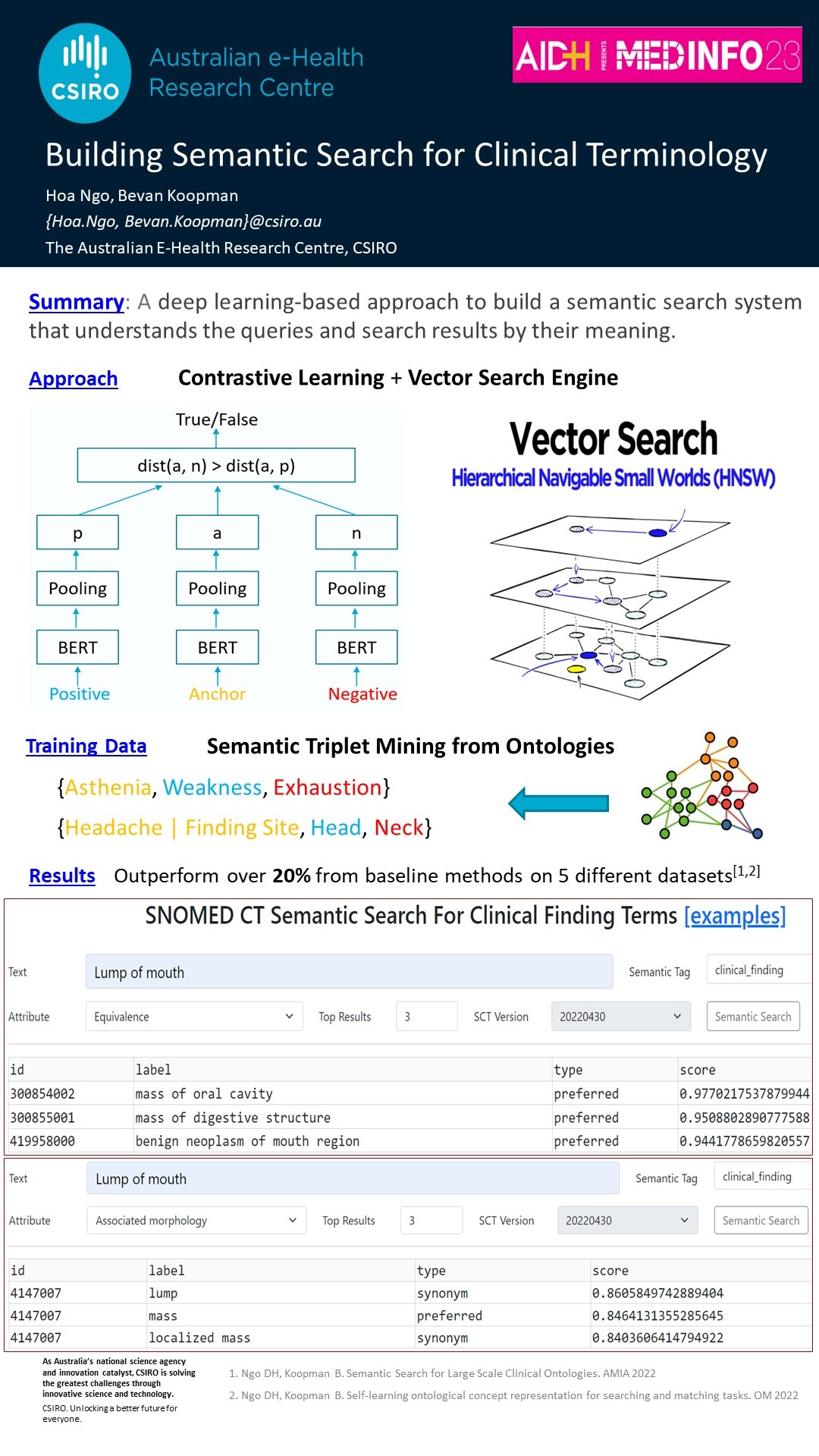 Dr Hoa Ngo is a Research Scientist working in the CSIRO Australian e-Health Research Centre. He has extensive knowledge of Semantic Web, Knowledge Graph, NLP and Machine Learning. He is specially interested in ontology/terminology matching, knowledge extraction and representation as well as applied state-of-the-art deep learning methods in health data.