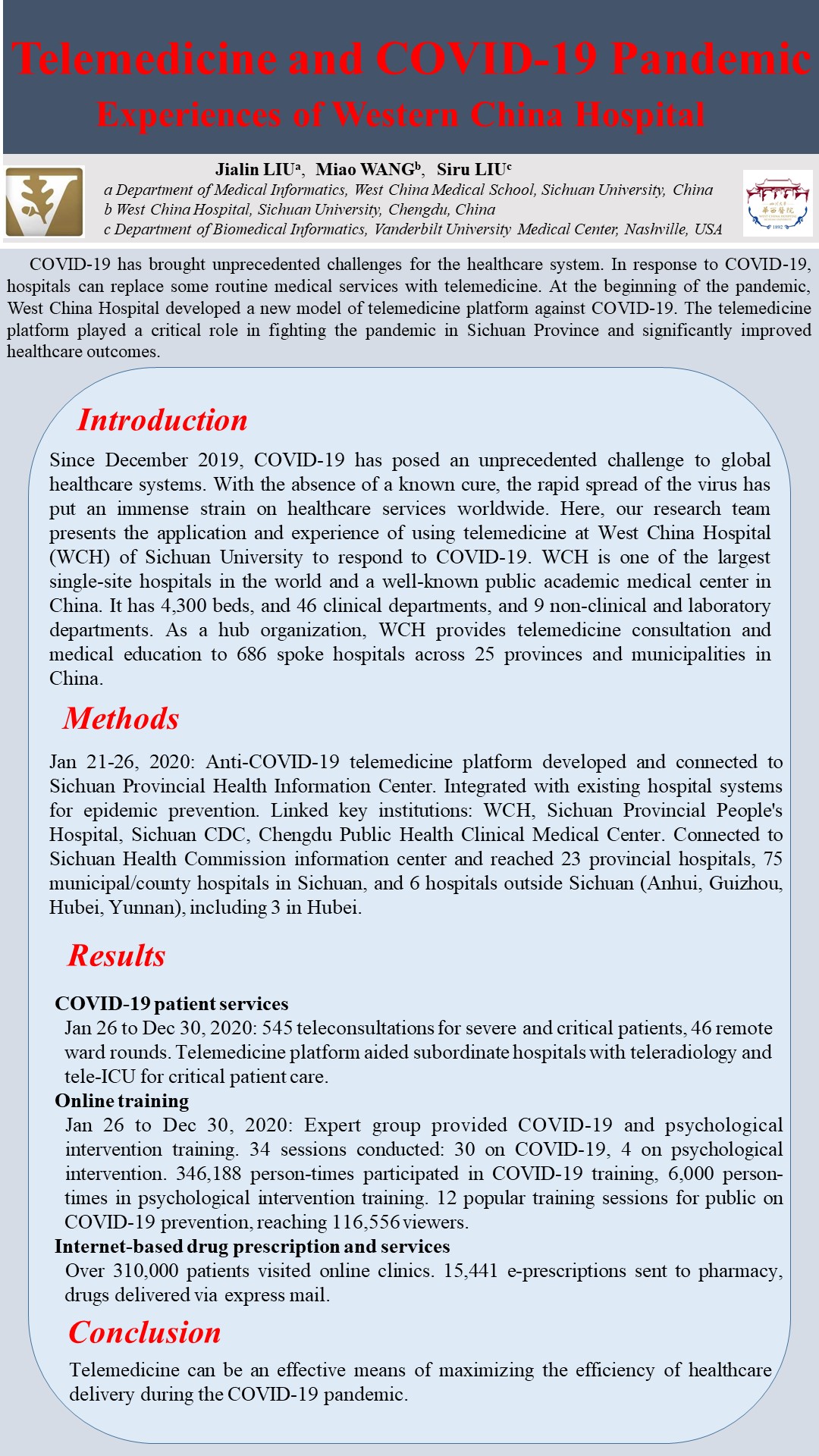 Telemedicine and COVID-19 Pandemic: Experiences of Western China Hospital
