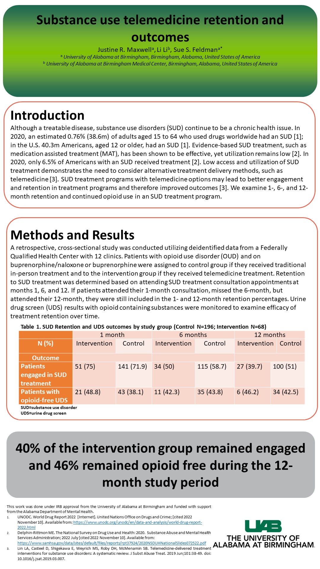Substance use telemedicine retention and outcomes